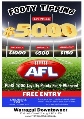 Join us every Friday night from 7:30pm for our 1st Members draw! (Starting from $3000 and jackpots weekly by $100 until won! See in venue for current jackpot amount) Followed by a 2nd draw at 8:15pm.